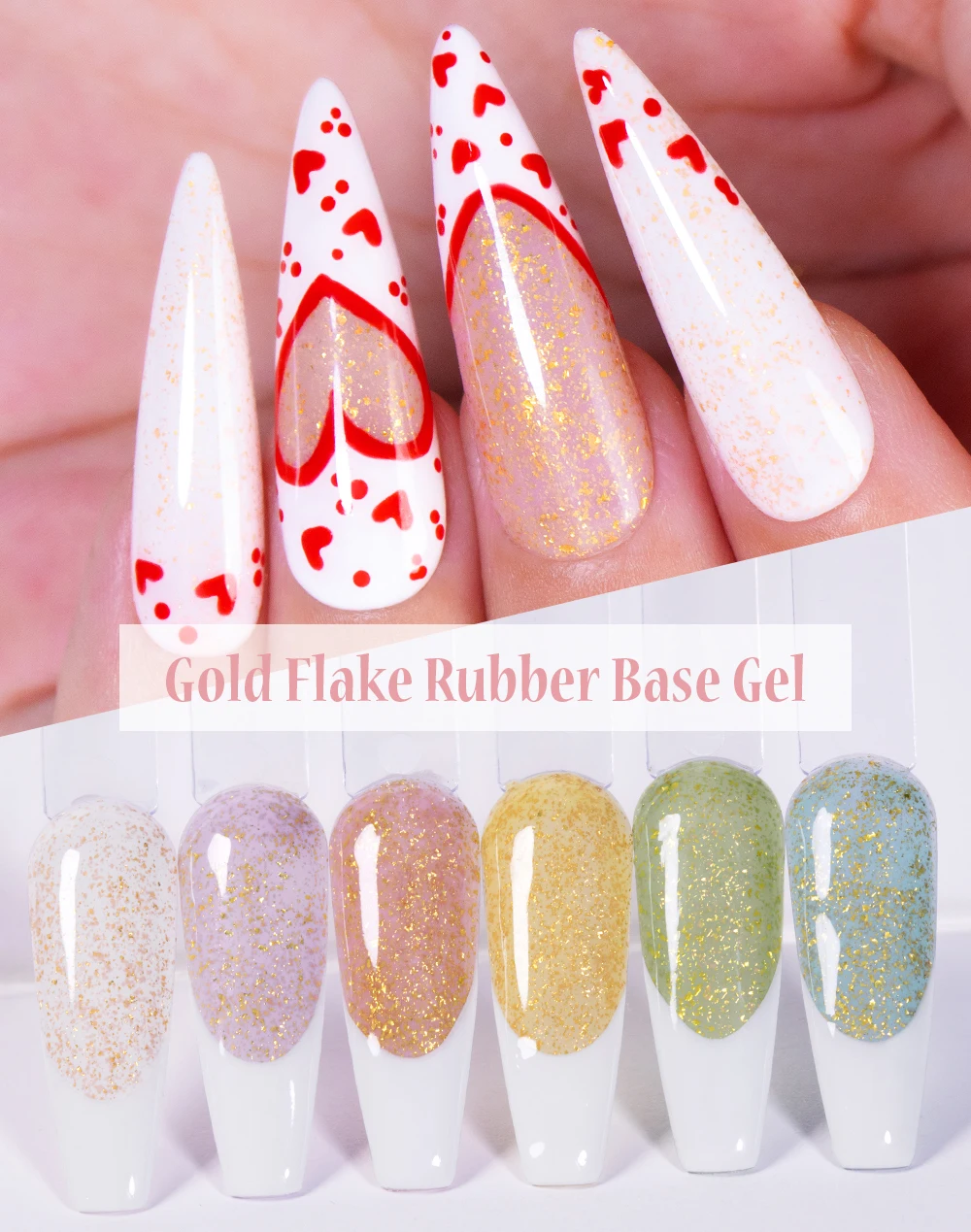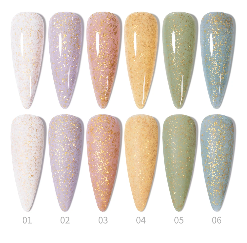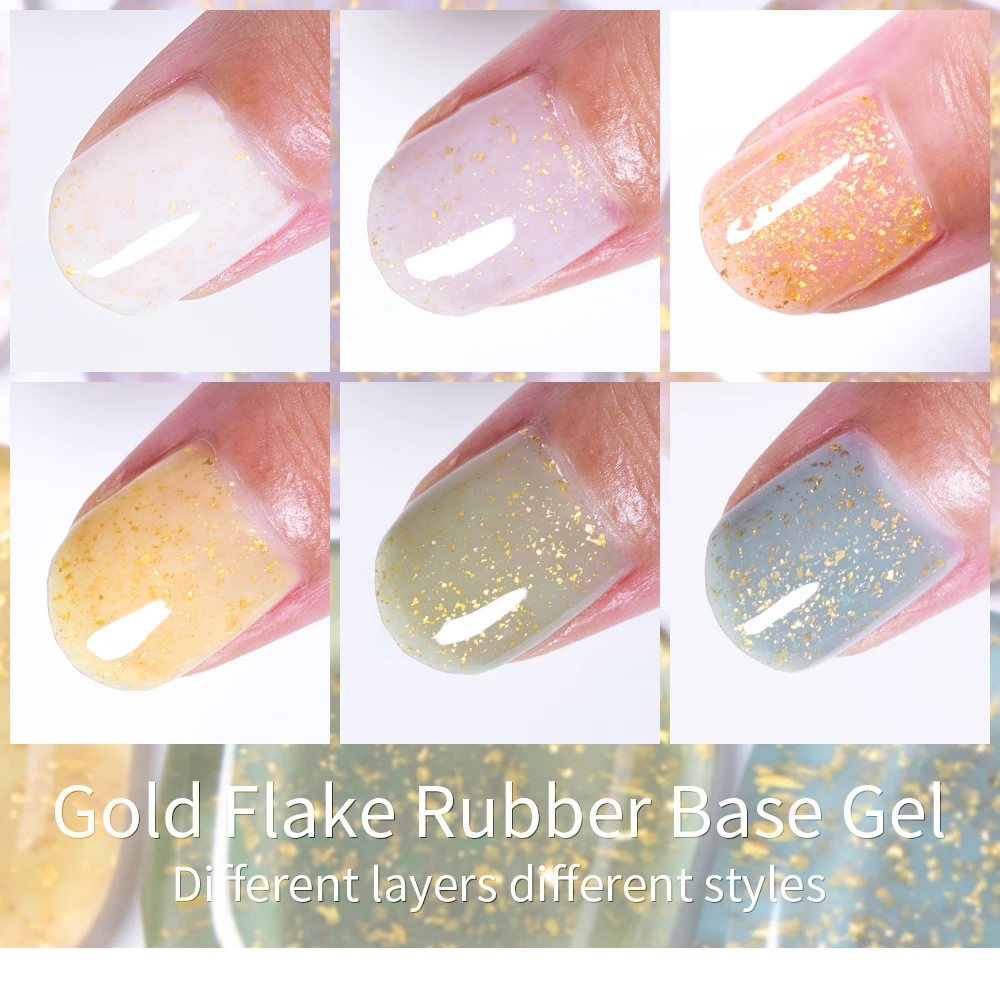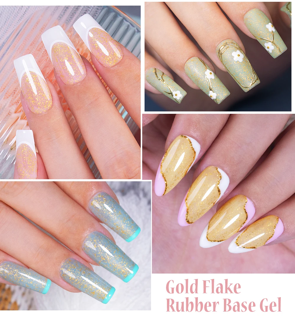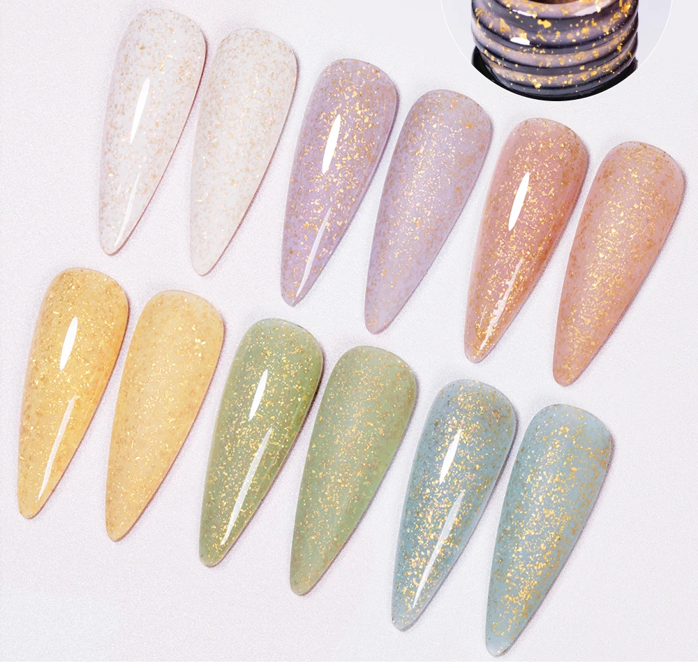 Gold Flake Glitter Rubber Base Gel Nail Polish Long Lasting Quick Extension Gel