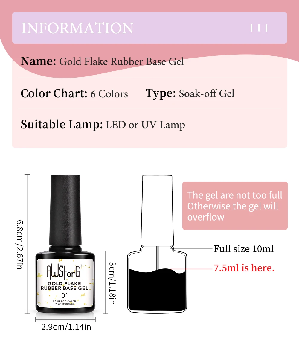 7.5ML Gold Flake Glitter Rubber Base Gel Nail Polish Long Lasting Quick Extension Gel Nail Art UV Glue Builder