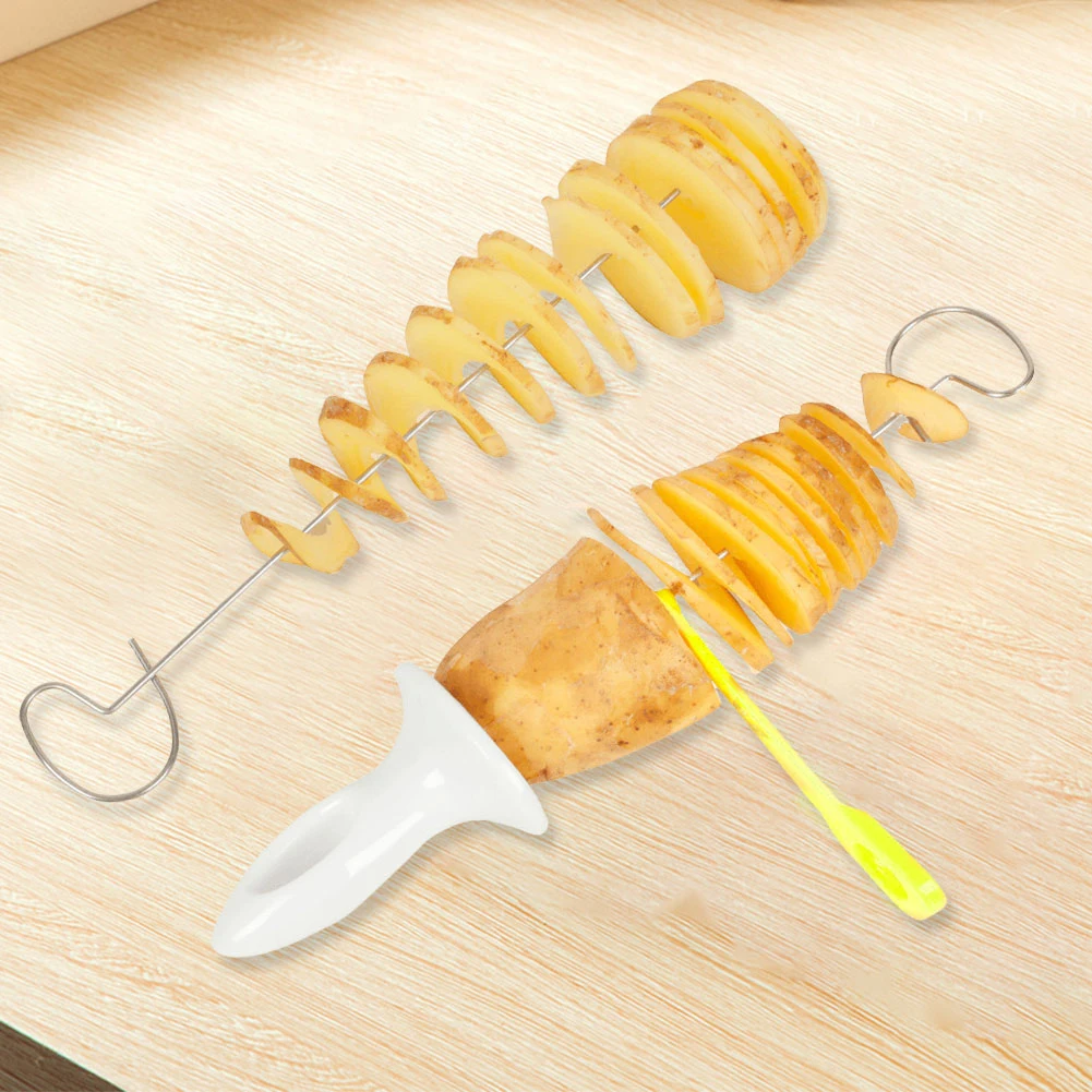 Spiral Potato Cutter with 4 Stainless Steel Sticks Manual Twisted Potato Slicer Reusable Potato Twister Kitchen Accessories